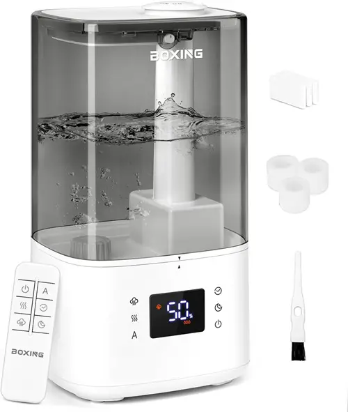 If you’ve ever woken up feeling like you’ve spent the night in a desert, the BOXING 6L Warm & Cool Mist Humidifier is your ticket to smoother mornings and calmer nights.
