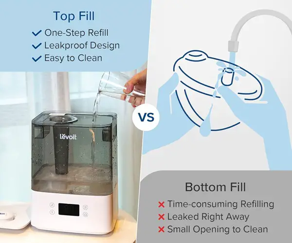 As top-fill humidifiers come with varied tank capacities, you must also check for the right size that is most suitable for you.